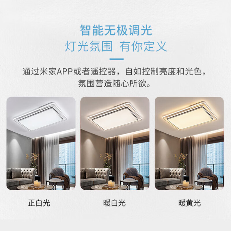 给大家分享下!实实在在的说这款雷士照明WHXD124D/F-02 124W是我喜欢的外观,质量还不错,灯已安装完成,经使用非常满意,灯可以变色4档,带遥控器也能操作灯亮度和变色,还带有语音功能挺方便的。