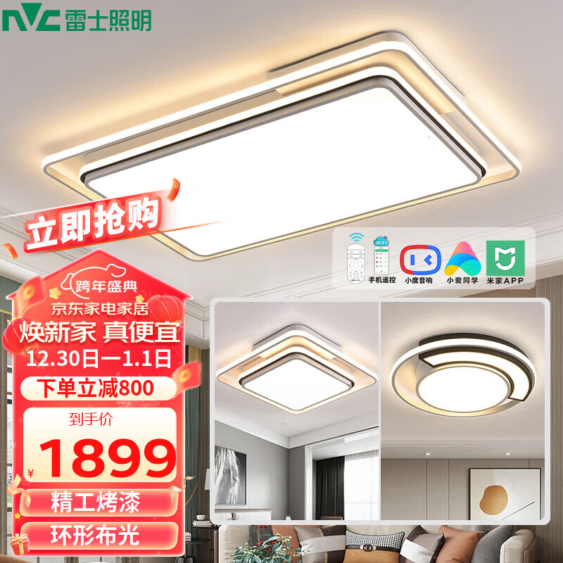 雷士照明(NVC)LED吸顶灯客厅灯北欧现代简约卧室书房灯饰灯具套餐二室一厅B价格:2699.00元!