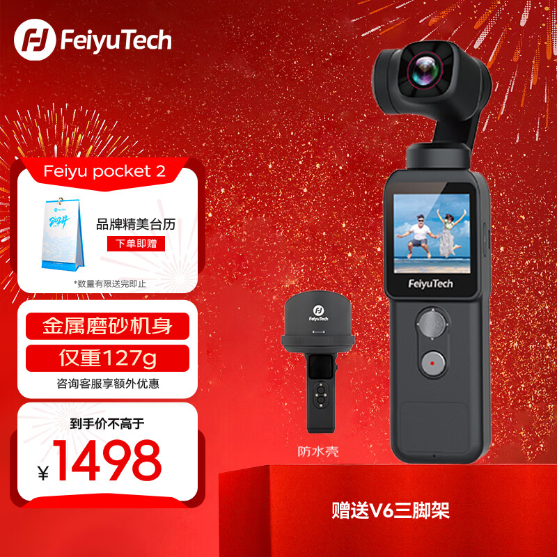 飞宇Feiyu pocket2口袋相机手持云台 4K高清增稳2代运动相机 三轴防抖 智能追踪 广角vlog摄影机 标配+防水壳价格:1498.00元!
