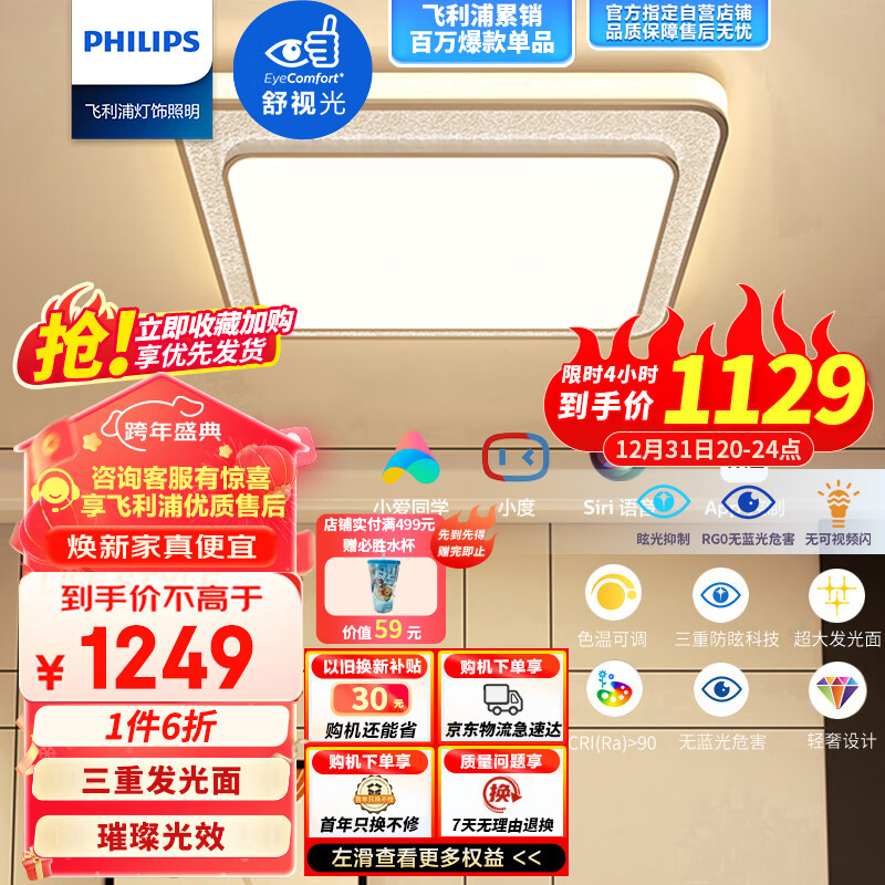 飞利浦led吸顶灯智能卧室书房餐厅现代简约灯具灯饰智控调光70W 悦恒价格:2069.00元!
