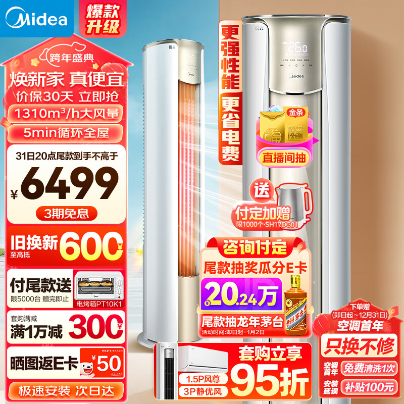 美的(Midea)空调 3匹 锐云2代 新一级能效 变频冷暖 空调立式 客厅空调柜机 KFR-72LW/N8XHA1Ⅱ价格:6499.00元!