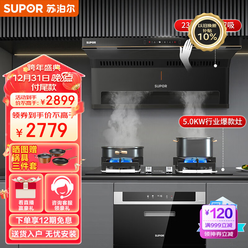 苏泊尔(SUPOR) 烟灶消顶侧双吸7字型大吸力 23立方免拆洗油烟机燃气灶消毒柜多件套 DE15+Q5天然气+508价格:3098.00元!