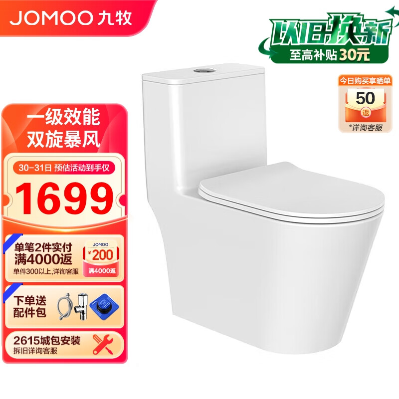 九牧(JOMOO)11383-2-1/41K-1家用虹吸式抗菌双漩坐便器大冲力马桶400坑距价格:2099.00元!
