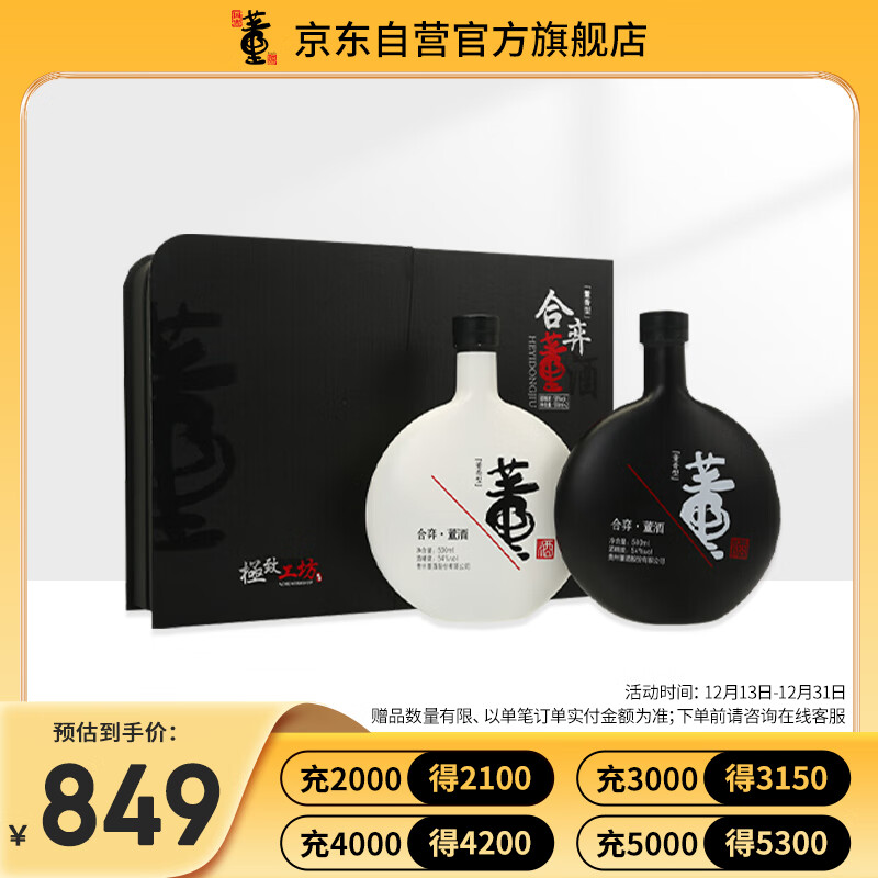 董酒 合弈 董香型白酒 54度 500ml*2礼盒装 年货送礼价格:943.33元!