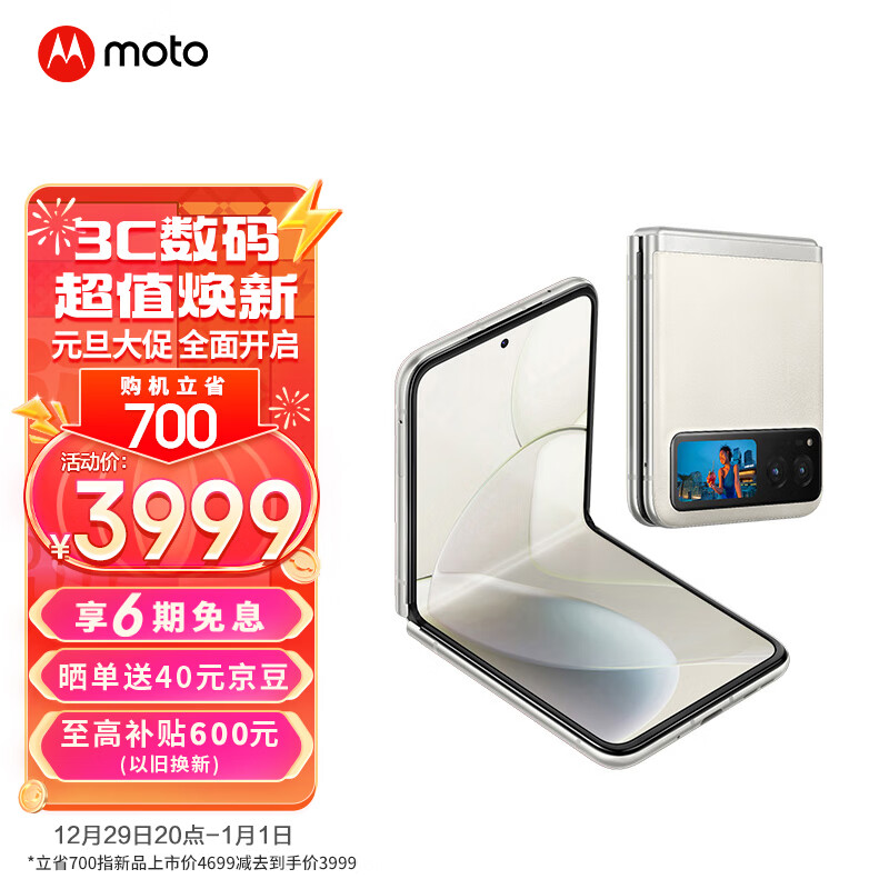 摩托罗拉 moto razr 40 掌心玲珑 自由悬停 旗舰影像 超长续航 双卡双待双5G 折叠屏手机 12GB+256GB 皎月白价格:4699.00元!