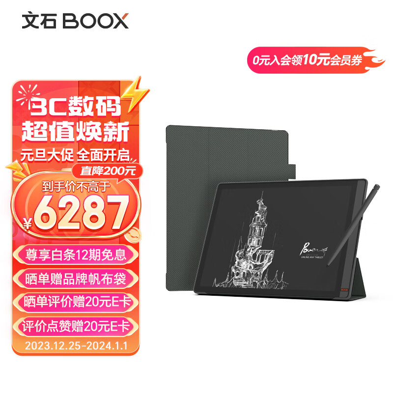 文石BOOX Tab13 13.3英寸大屏电子书阅读器 墨水屏电纸书电子纸保护套套装 智能办公快刷阅读平板 6+128G价格:6287.00元!