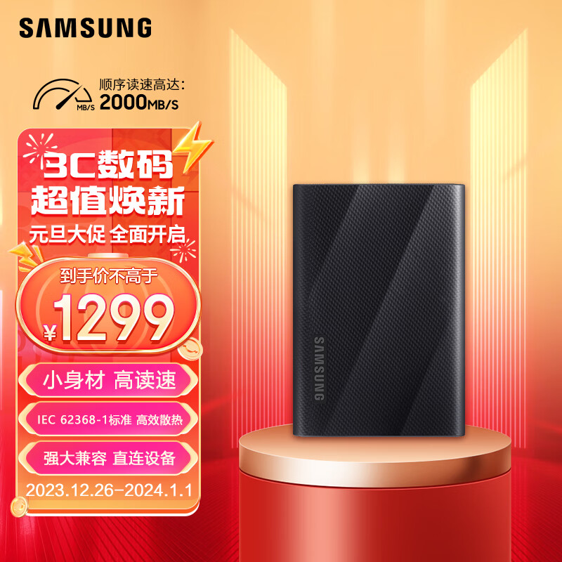 三星(SAMSUNG)2TB Type-c USB 3.2 移动固态硬盘(PSSD)T9 星空黑 NVMe传输速度2000MB/s 多设备兼容价格:1299.00元!