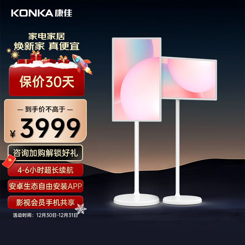 康佳32英寸随心屏 移动自在屏 大屏学习机 触控触摸一体机 智慧屏平板电视电脑显示 移动精灵A32M1价格:3999.00元!