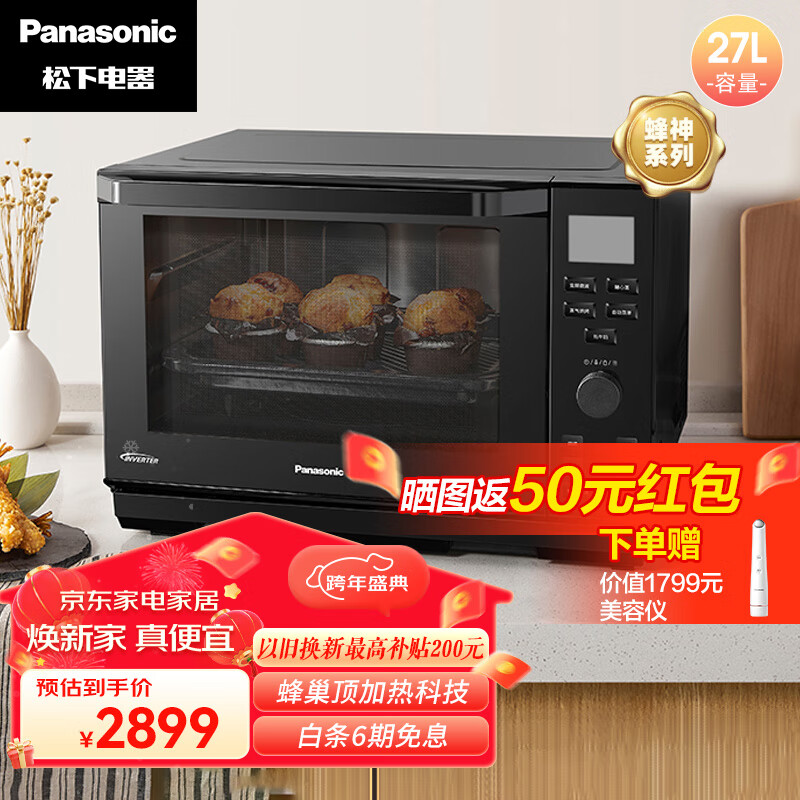 松下(Panasonic)蜂神系列NN-DS2000XPE 27升变频微波炉 微蒸烤炸一体机蜂巢顶聚热旋钮操作 六档智能变频价格:2499.00元!