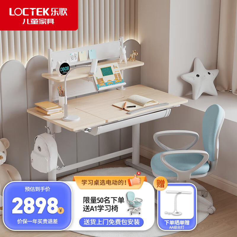 乐歌(Loctek)电动升降儿童学习桌书桌幼儿园中小学生写字桌1.1米EC2白+A1蓝价格:3198.00元!