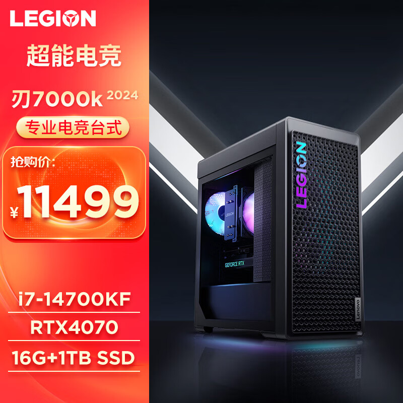 联想(Lenovo)拯救者刃7000K 2024 14代酷睿i7游戏电脑主机(i7-14700KF RTX4070 12GB显卡 16G DDR5 1TB SSD)价格:11499.00元!