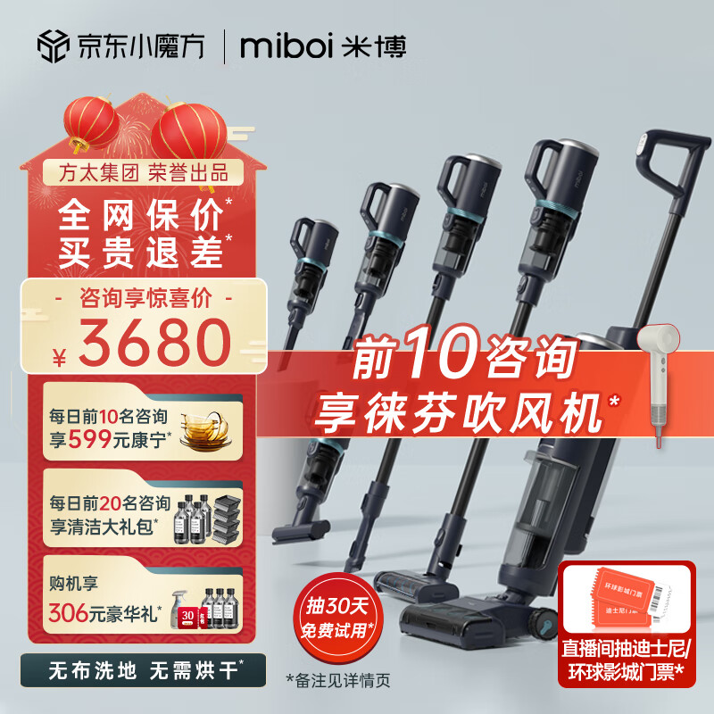 米博(Miboi)无滚布洗地机Q7Pro家用洗拖吸一体拖地机智能除螨除菌自清洁扫地吸尘机器人方太集团出品 老爸评测-咨询有礼价格:3680.00元!
