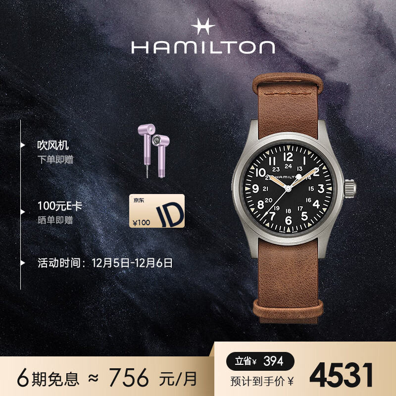 汉米尔顿(Hamilton)汉密尔顿瑞士手表卡其野战系列手动上链男表价格:4731.00元!