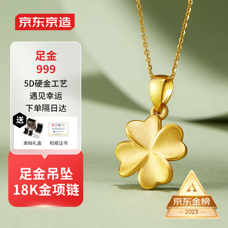 京东京造黄金项链女足金四叶草吊坠+18K金项链 生日实用礼物女价格:1499.00元!