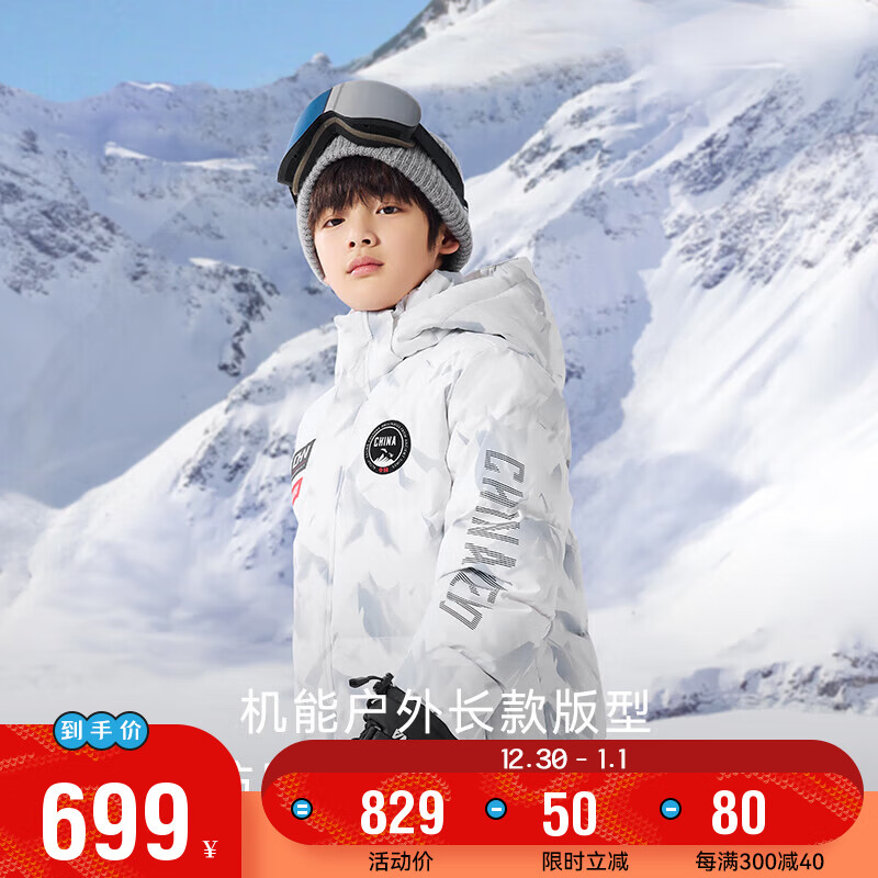 安踏儿童童装男大童冬季户外加绒保暖热返科技长羽绒服A352346911价格:829.00元!