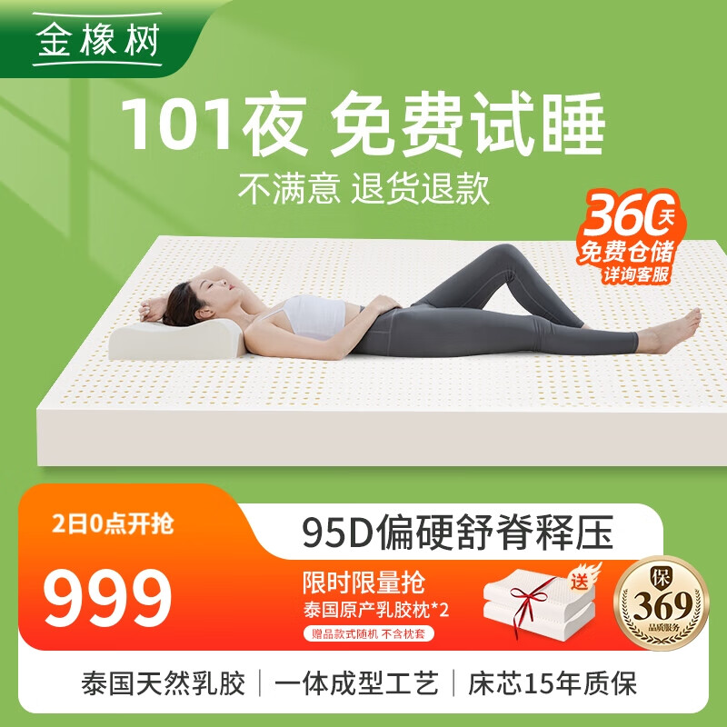 金橡树泰国乳胶原液进口床垫双人床 150*200*5cm 1.5米 92%乳胶 泰舒95D价格:1299.00元!