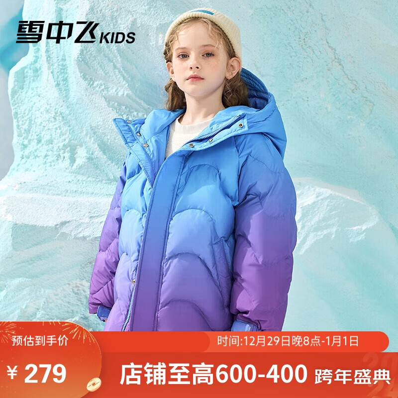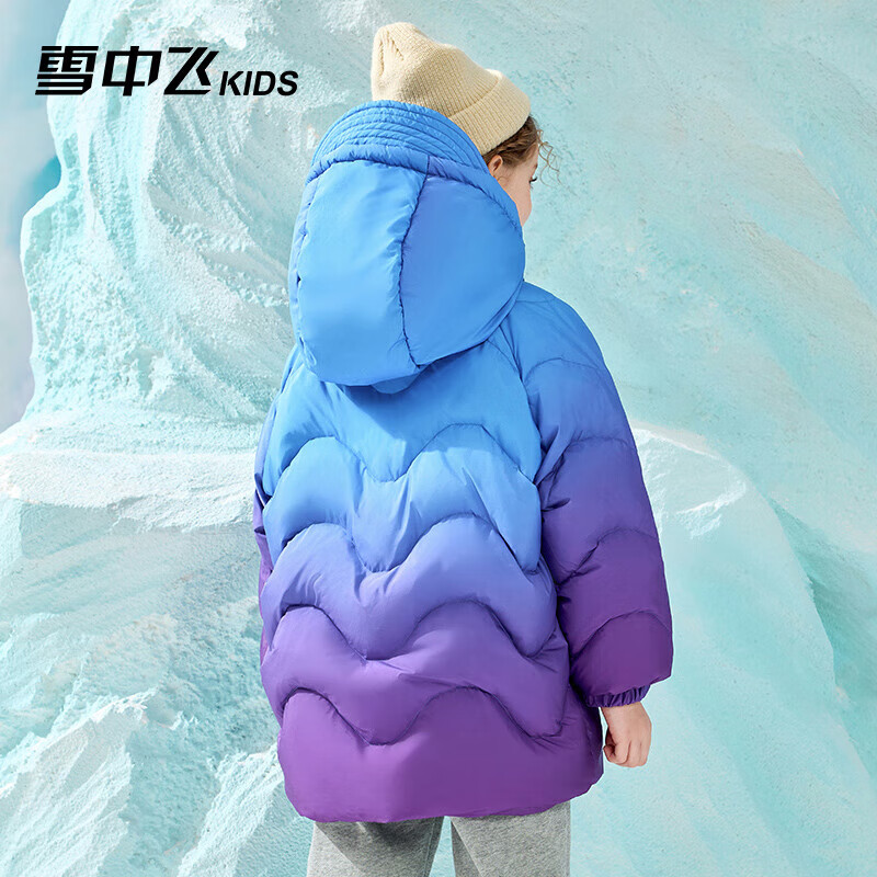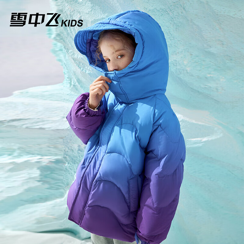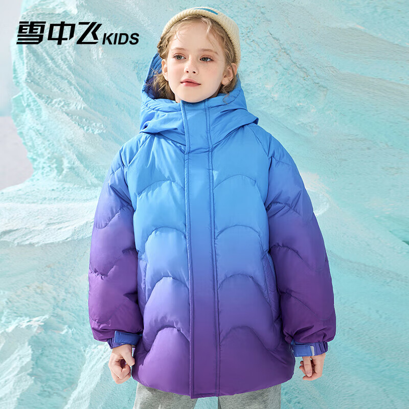 雪中飞童装儿童羽绒服男女童渐变色撞色中大童拼接羽绒服斑斓紫130cm价格:679.00元!