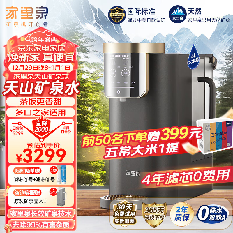 家里泉矿泉机 RO反渗透净水器家用台式即热净饮水机免安装加热直饮一体机天山矿泉款昆仑墨适用【3-6人】价格:3299.00元!