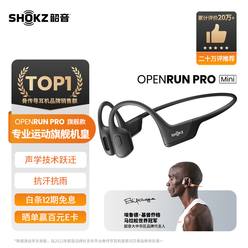 SHOKZ韶音 OpenRun Pro骨传导蓝牙耳机开放式耳机运动无线耳骨传导耳机跑步骑行不入耳佩戴S810/S811 【适合女士和青少年使用】mini黑价格:1298.00元!