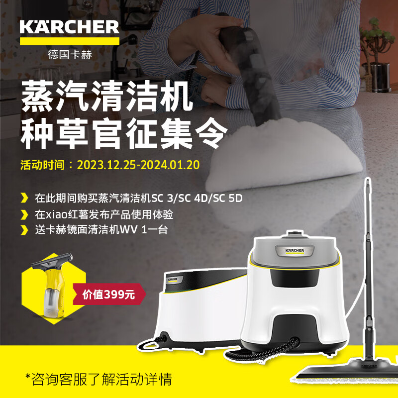 KARCHER德国卡赫 家用高温高压蒸汽清洁机 厨房油烟机空调清洗机 拖地洗地机杀菌除螨SC4D 2023重磅上市价格:2599.00元!
