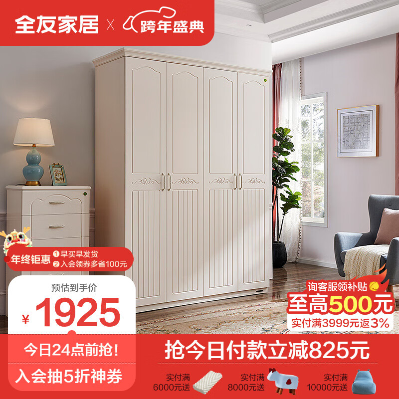 全友家居 衣柜韩式田园卧室家具板式大衣柜衣橱120613 四门衣柜价格:2750.00元!