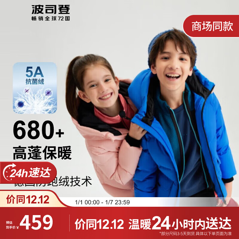 波司登2023秋冬男女童羽绒服中长款连帽保暖防风百搭休闲儿童外套T20145940E价格:659.00元!