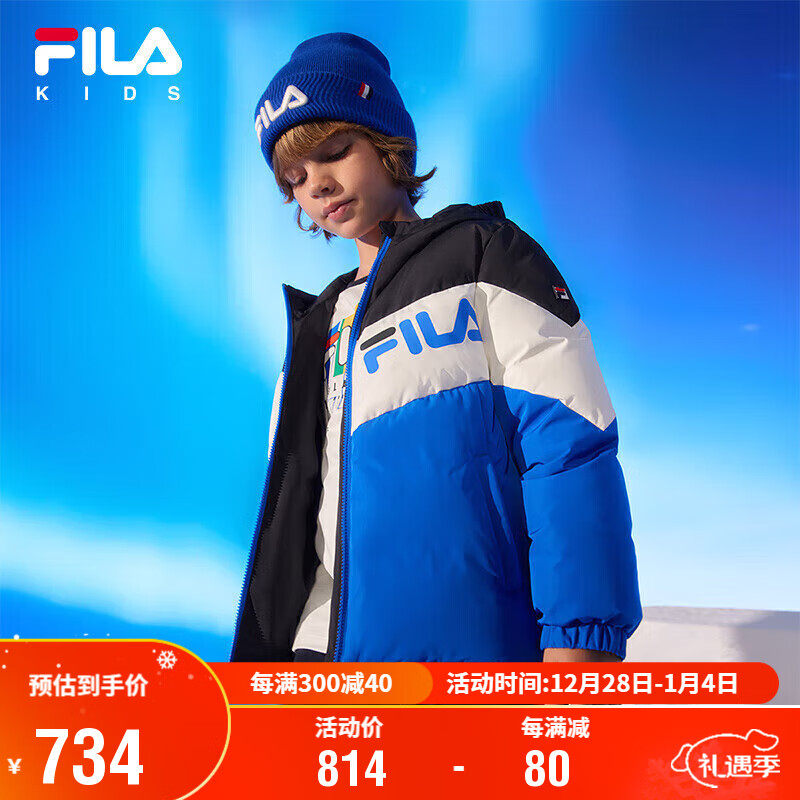 FILA斐乐童装儿童上衣外套2023秋冬中大童男女童保暖舒适羽绒服潮价格:814.00元!