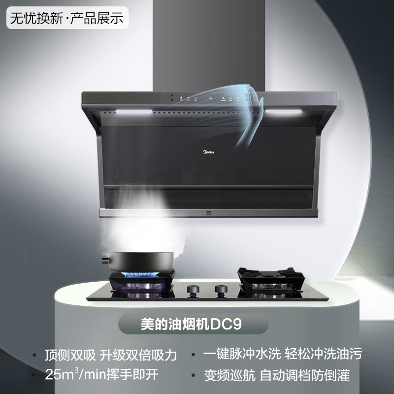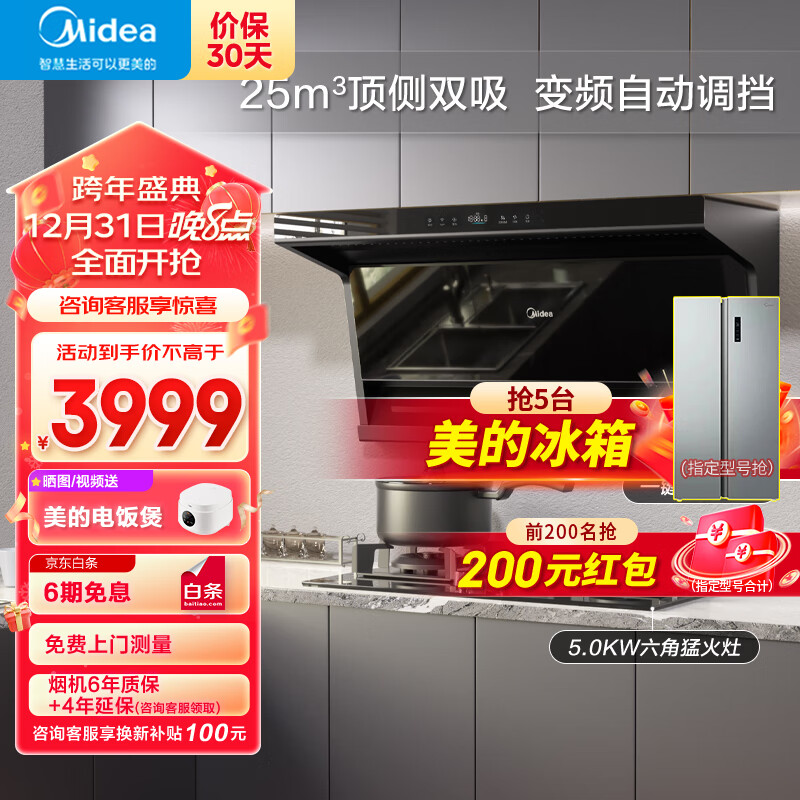 美的(Midea)抽油烟机燃气灶具套装?家用顶侧双吸25风量大吸力变频烟感 5.0kW燃气灶 烟灶套装DC9+Q70天然气价格:3999.00元!