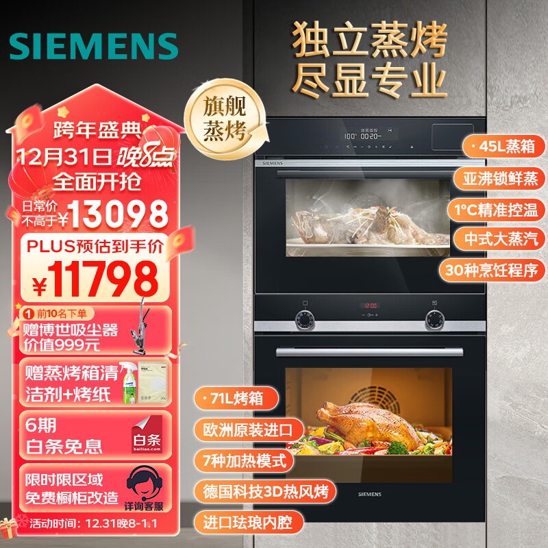 西门子蒸烤箱套装 德国原装进口烤箱+国产嵌入式蒸箱 自清洁HB534+CD289 烤59.5CM蒸45.5CM高价格:14999.00元!
