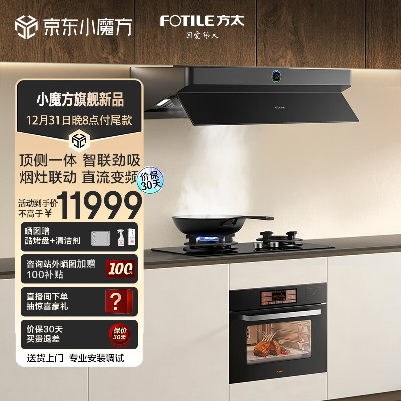 方太(FOTILE)烟灶蒸烤三件套24巡航风量全新形态欧式油烟机套装烟灶联动蒸烤箱套装01-F2.i+THF1-G+EF1.i价格:11999.00元!
