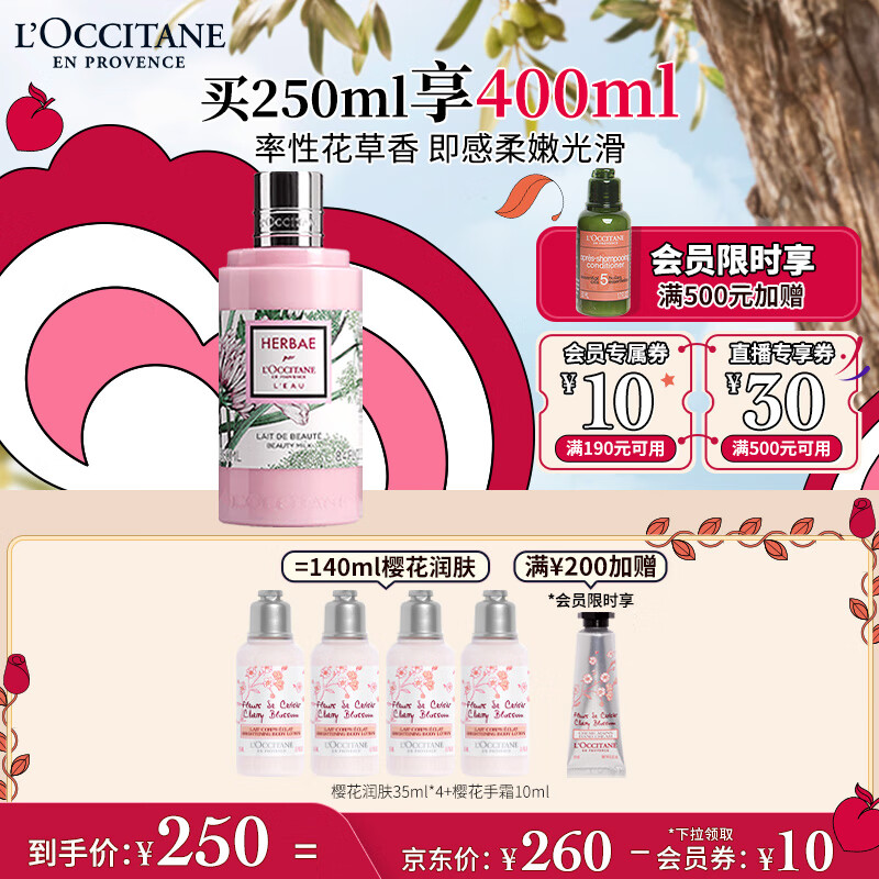 欧舒丹花悦奇境香氛美肤乳250ml滋润留香易吸收生日礼物送男女友礼盒价格:260.00元!