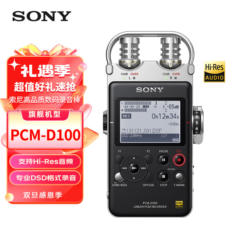 索尼(SONY)数码录音棒/录音笔PCM-D100 32G 黑色 专业DSD播放格式 大直径定向麦克风 商务乐器学习适用价格:4499.00元!