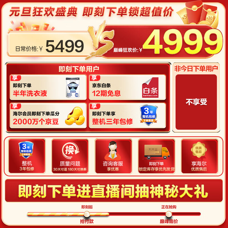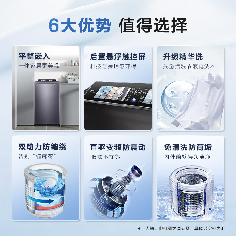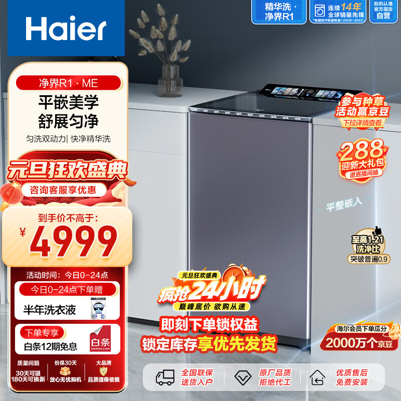海尔(Haier)波轮洗衣机全自动【净界R1 】10公斤 后控平嵌 精华洗 双动力防缠绕 免清洗防桶垢MS100-BZ568H价格:4999.00元!