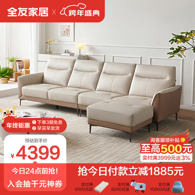 全友家居 真皮沙发 现代简约大小户型头层黄牛皮沙发客厅家具102710D价格:6283.89元!