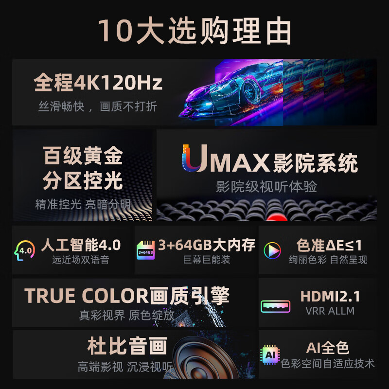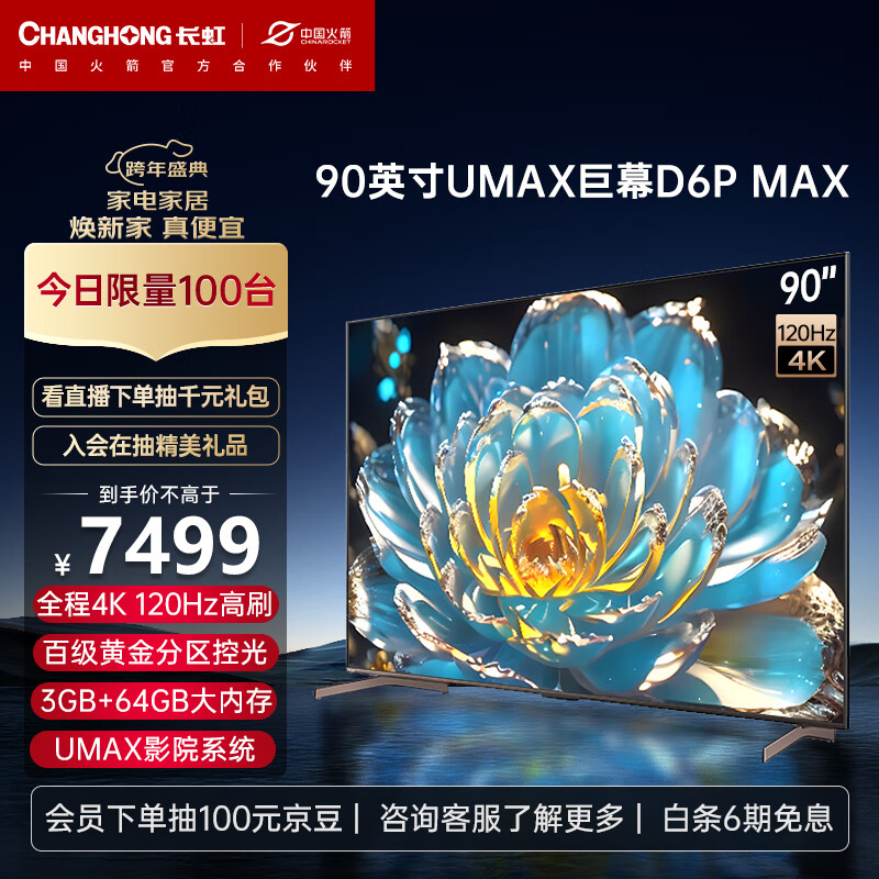 长虹电视90D6P MAX 90英寸 4K120Hz 3+64GB大内存 UMAX影院系统液晶LED电视机价格:7499.00元!
