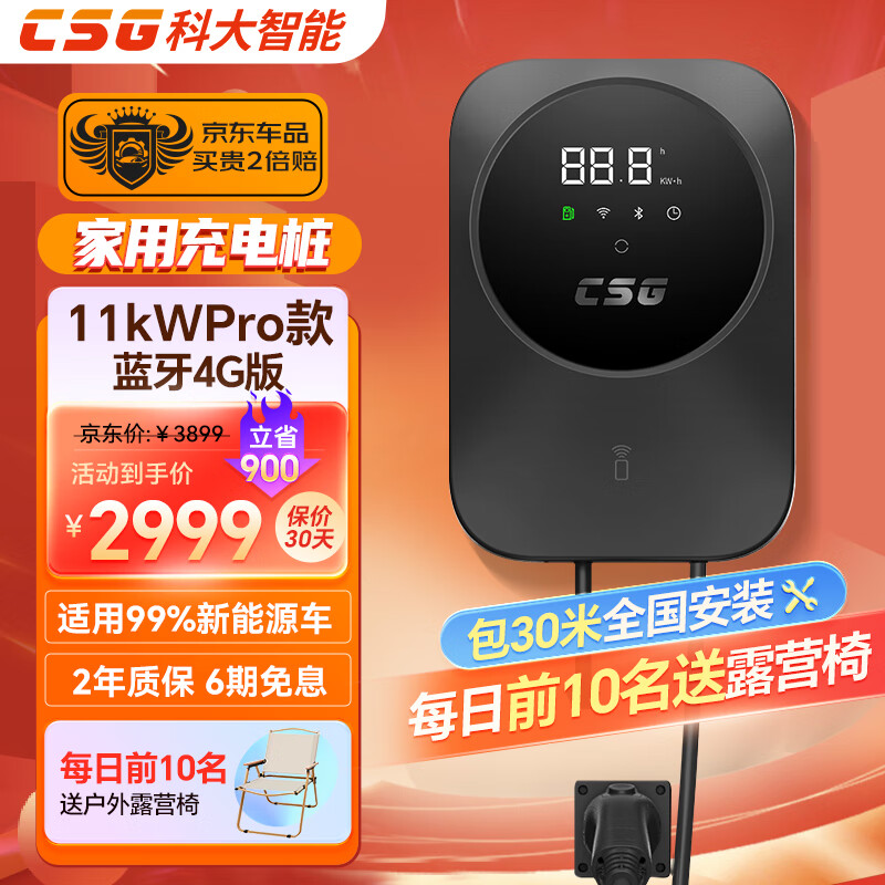 CSG科大智能充电桩11kw家用新能源汽车交流充电桩适用特斯拉比亚迪极氪小鹏埃安大众蔚来问界理想包30米安装价格:3899.00元!