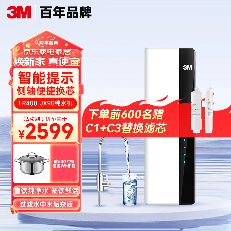 3M净水器家用净水机智能直饮RO反渗透过滤器 400G无桶大通量纯水机 LR400-JX90价格:2799.00元!