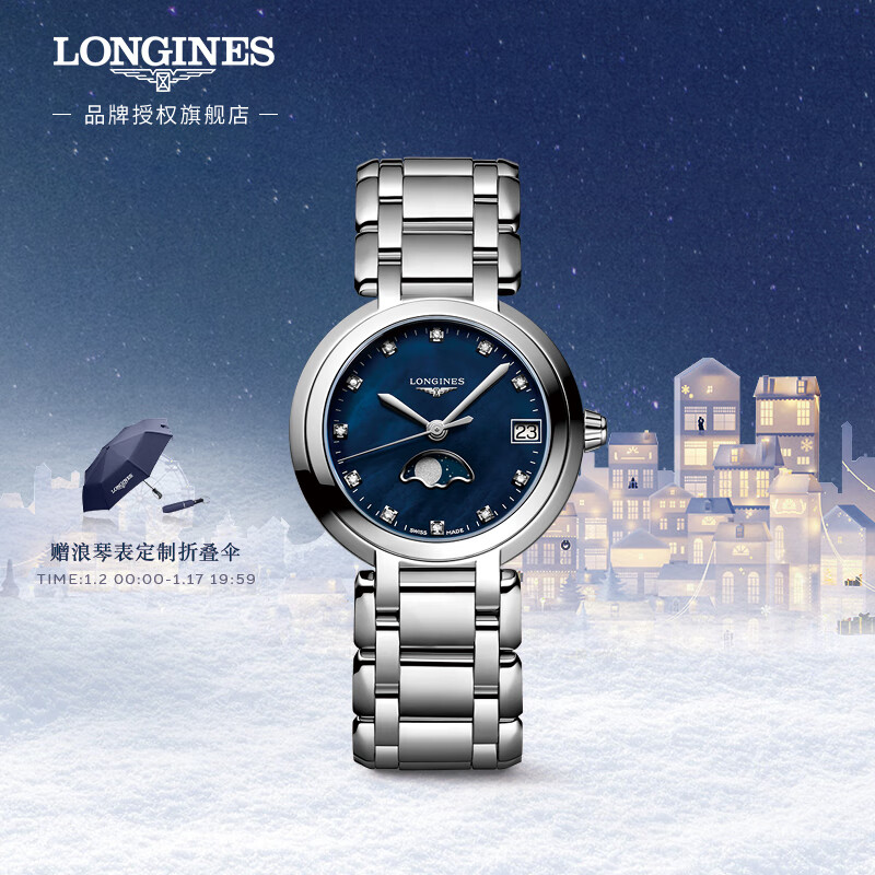 浪琴(LONGINES)赵丽颖推荐 瑞士手表 心月系列 月相石英钢带女表 L81154986价格:13300.00元!