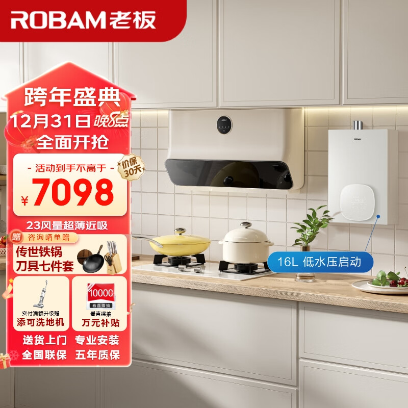 老板(Robam)烟灶热 白色23风量超薄近吸智能换气抽油烟机灶具16升燃气热水器22A3S+32B8AT+HT322A-16价格:7098.00元!