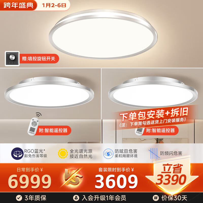 孩视宝【两室一厅】护眼吸顶灯客厅灯卧室灯全光谱书房儿童房防蓝光价格:6999.00元!