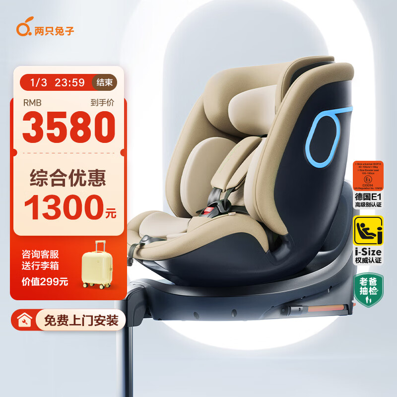 两只兔子求知2pro智能通风车载婴儿童座椅0-4-12岁宝宝汽车用 星暮金价格:4880.00元!