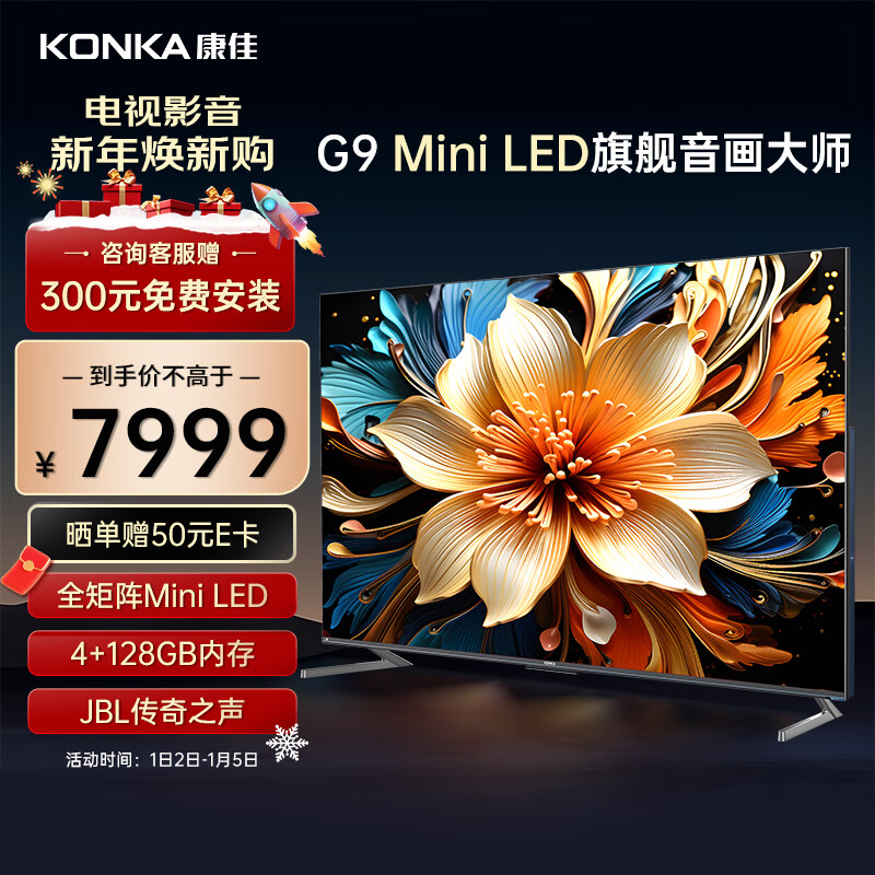 康佳电视 85G9 85英寸 Mini LED 144Hz 1200nits 4+128G 4K超清屏智能液晶平板游戏电视机以旧换新价格:7999.00元!