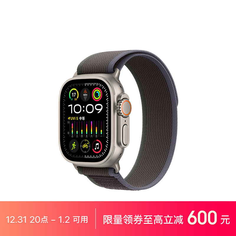 Apple Watch Ultra2 智能手表GPS+蜂窝款49毫米钛金属表壳蓝配黑色野径回环式表带M/L eSIM健康手表MRFR3CH/A价格:6499.00元!