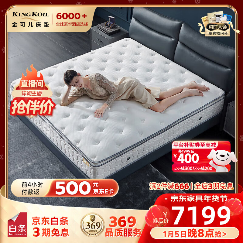 金可儿(Kingkoil)弹簧床垫三区独袋弹簧世茂酒店升级款喜来登+ 1.8米*2米价格:7899.00元!
