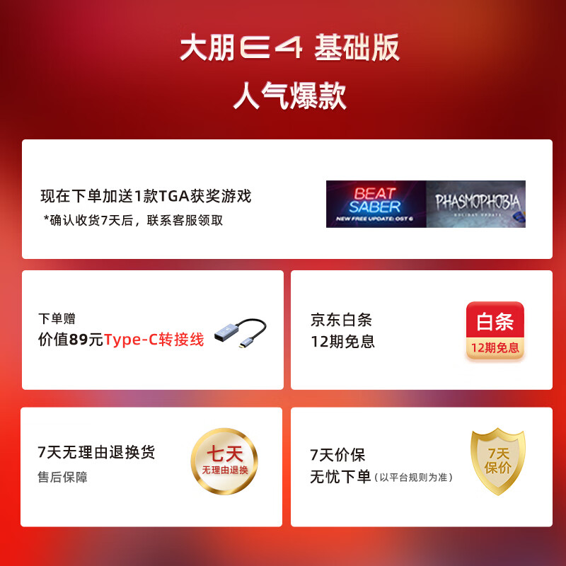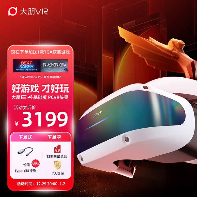 大朋 E4 PCVR头显 智能VR眼镜 体感游戏机 畅玩Steam游戏 玩家专属 3D设备 非AR眼镜一体机价格:3199.00元!