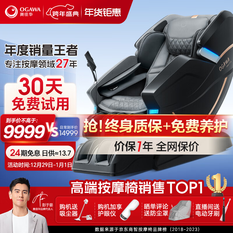 奥佳华(OGAWA)按摩椅家用太空舱全身按摩小巧沙发多功能全自动电动按摩椅子3D机芯中医推拿豪华头等舱7608TEN+ 【2023升级款】秘境黑价格:9999.00元!