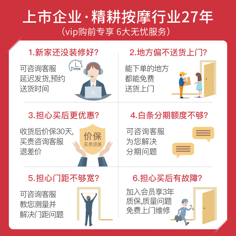 5、按摩效果:确实名不虚传,很舒服外观颜值:漂亮,很配家装。操作难易:对年轻人来说,不难送货时效:三天