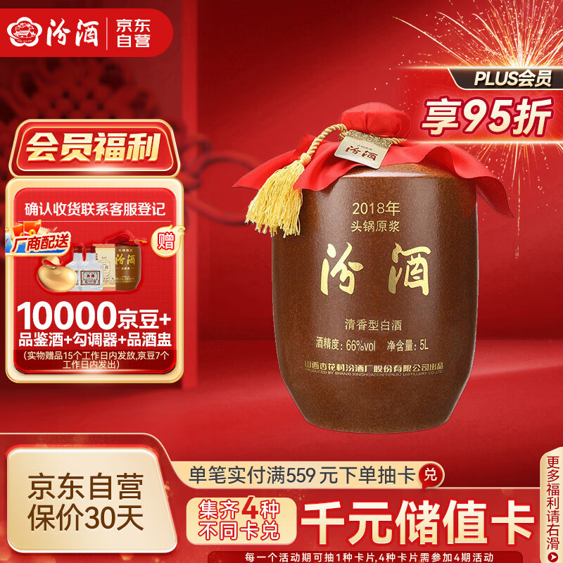 汾酒2018年头锅原浆 清香型 高度白酒 66度5L封坛酒高端礼赠 年货送礼价格:5870.00元!