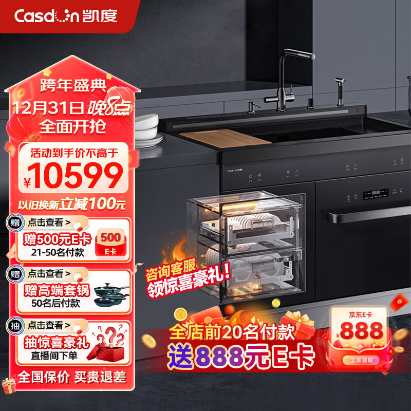 凯度(CASDON)集成水槽洗碗机一体 多功能厨房 嵌入式洗碗机储物柜集成净洗中心 S105B12XKB价格:10599.00元!