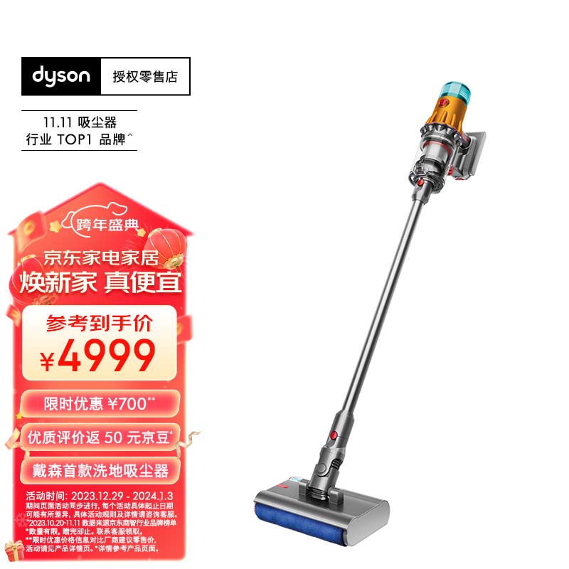 戴森(DYSON)V12 Detect Slim Nautik 轻量吸尘洗地机 手持无线家用吸拖一体吸尘器 除螨吸尘洗地干湿两用价格:5699.00元!